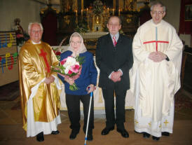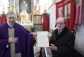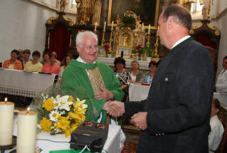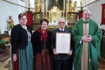 Kirchenchor und Pfarre mit einem Dankgottesdienst. Johann Schneeweis ist seit 1963 ständiges Mitglied des Kirchenchores und war 40 Jahre lang Organist in der Pfarre Mühldorf Niederranna und Bassgeiger. Für seine Verdienste um die Kirchenmusik in der Pfarre verlieh Diözesanbischof DDr. Klaus Küng das Ehrenzeichen des hl. Hippolyt, das Professor Dr. Spindelböck nach dem Gottesdienst überreichte. Chorleiterin Margit Haidl gratulierte im Namen des Kirchenchores und Mag. Karl Höbartner überbrachte die Glückwünsche von Pf. KR Josef Gugler sowie von Pfarrgemeinde- und Pfarrkirchenrat. Weitere Fotos |