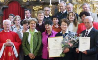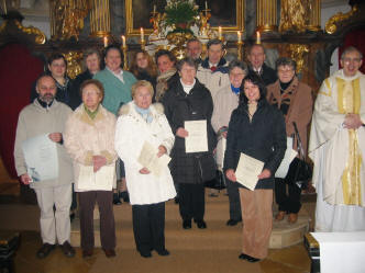 Nach dem Festgottesdienst am Christkönigssonntag, den der Kirchenchor mitgestaltete, wurden zahlreiche Mitglieder des Chores geehrt. Chordiplome für langjährige Mitgliedschaft gab es für Helga Kersch, Norbert Trastaller, Mag. Wolfgang Alker, Elfriede Weber, Maria Hakala und Andrea Lettner. Dank und Anerkennungsschreiben der Pfarre erhielten Sabine Maier, Maria Muthenthaler, Maria Geppl, Josef Hofbauer, Rosa Eigner, Anna Sekora, Maria Trondl, Karin Eigner, Maria Gattinger, Margarethe Martin, Josef Martin, Franziska Munk und Silvia Rupf. Gefeiert wurde im neu adaptierten Sitzungszimmer des Pfarrhofes bei Brötchen und einem Gläschen Wein. |