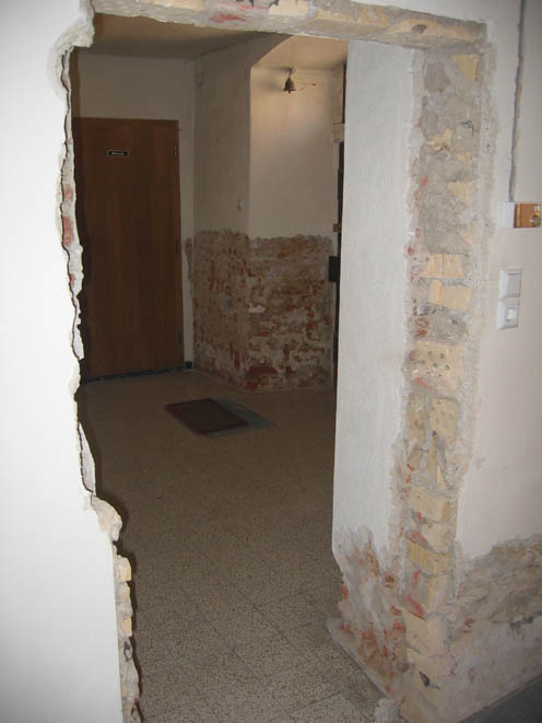 begonnen. Im Erdgeschoss wurden die feuchten Putzteile