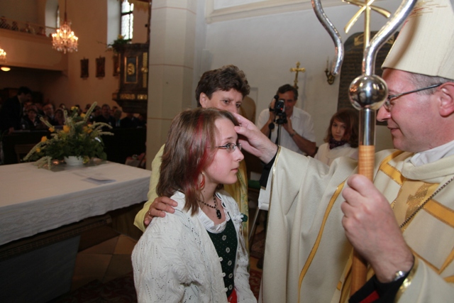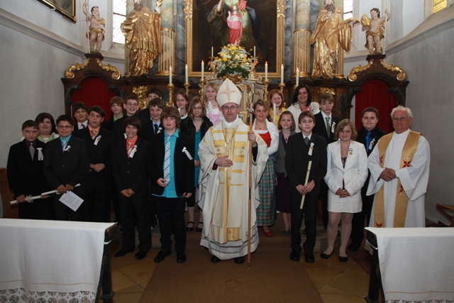 Generalvisitation und Firmung in der Pfarre Niederranna Pfarrer Josef Gugler, FirmhelferInnen, Pfarrgemeinderat und Pfarrkirchenrat bereiteten die für Sonntag, 2. Mai 2010, festgesetzte Generalvisitation unserer Pfarre durch Weihbischof Dr. Anton Leichtfried gründlich vor. Mit Blick auf den bevorstehenden Weihbischofsbesuch kam Dechant P. Alfons Möstl nach Niederranna zu einer „Vorvisitation“, bei der Kirchenrechnung, Kanzlei- und Matrikenführung geprüft wurden. Weihbischof Anton lud Pfarrer Josef Gugler nach St. Pölten, um die pastorale Situation der Pfarre eingehend zu besprechen. In gemeinsamen Sitzungen der pfarrlichen Räte wurde eine grundsätzliche Planung des Ablaufes dieses Festes erstellt, die dann dem Weihbischof zur Kenntnis gebracht wurde. Der Firmungsgottesdienst wurde vom Firmteam und der Jugendchorleiterin geplant und von Karl Höbartner finalisiert. Am 2. Mai, dem 5. Sonntag in der Osterzeit, war es dann so weit. Um 8.15 kam Weihbischof Anton Leichtfried mit seinem Zeremoniär in den Pfarrhof und wurde anschließend von Ministranten und Pfarrer Gugler zum Johannesbildstock geleitet, wo ihn Bgm. Manfred Hackl und Kinder der Volksschule herzlich begrüßten. Von dort zog man mit den Firmlingen, Ehrengästen und dem Musikverein Mühldorf zur Pfarrkirche. Im sehr feierlich gestalteten Visitations- und Firmungsgottesdienst empfingen 12 Firmlinge aus Mühldorf und 10 Firmlinge aus Spitz das Sakrament der Firmung. In seiner Ansprache betonte Weihbischof Anton die großen, kleinen und Minientscheidungen, die unser tägliches Leben prägen und ermunterte die Firmlinge, diese Entscheidungen bewusst zu erleben und sie im Sinne Jesu Christi zu treffen. So eine - aber bedeutende - Entscheidung ist auch das JA jedes Firmlings zum Empfang dieses Sakramentes. Nach dem Gottesdienst luden die pfarrlichen Räte zum Fest mit dem Weihbischof in das Festzelt im Pfarrhofgarten. Zwettler Bier vom Fass, Mittagstisch, Kaffee und Kuchen erfreuten die zahlreichen Besucher. Weihbischof Anton hatte Gelegenheit zu vielen persönlichen Gesprächen – er versteht ja eine Generalvisitation als pastoralen Besuch. Um 14 Uhr waren PGR und PKR zu eine gemeinsamen Sitzung mit dem Weihbischof geladen, in der die Veränderungen in unserer Gesellschaft und ihre Auswirkungen auf das pfarrliche Leben ein Thema waren. Weihbischof Anton besuchte nach dieser Sitzung die Kirche Trandorf, wo er von zahlreichen Kindern mit ihren Eltern zur Kindersegnung herzlich begrüßt wurde. Anschließend tagte der Weihbischof mit Pfarrer Gugler. Mit einer feierlichen Maiandacht um 18 Uhr in der Pfarrkirche fand der Besuch des Herrn Weihbischofs einen würdigen Abschluss. Wir alle sind dankbar für diesen wunderschönen und gelungenen Sonntag und hoffen, dass er uns noch lange in Erinnerung bleiben wird.