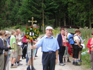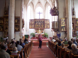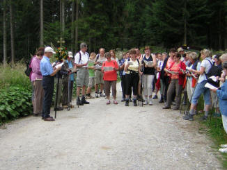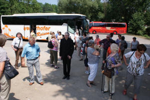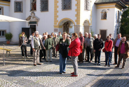 Im Zisterzienserkloster Hohenfurth (Vyšši Brod) feierten wir gemeinsam eine hl. Messe und besichtigten anschließend die imposante Klosteranlage, in der sich 5-7 Mönche um die Revitalisierung der Anlage bemühen. Beeindruckend war die Stadtführung in Krumau, die uns den Reichtum des südböhmischen Adels vor Augen führte. Die Familien der Witigonen, der Rosenberger und der Schwarzenberger haben diese wunderschöne Stadt geprägt, die zwischendurch auch immer wieder im Besitz der Habsburger war. Eine Andacht in Maria Brünnl (Dobra Voda), einem barocken Marienheiligtum und beliebten Wallfahtsort erinnerte uns an das Fest Mariä Heimsuchung (2. Juli) und ließ uns über das Magnifikat meditieren. Beim Bergwirt Schrammel in Moidrans/Zwettl fand dieser Pfarrausflug einen geselligen Ausklang. Die 48 Teilnehmerinnen und Teilnehmer waren begeistert und freuen sich schon auf den Pfarrausflug 2011. Ein Dankeschön unserem Busunternehmer Mayerhofer aus Traunstein, der uns wie in den Jahren zuvor aufs Beste betreute und ein Vergelt´s Gott an Prof. Dr. Spindelböck, der uns geistlich begleitete. |