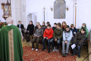 Firmlinge für dieses Jahr gewählt hatten. Ansprechende Texte und neue rhythmische Lieder erfreuten Pf. Gugler und die vielen Gottesdienstbesucher. Pf. Gugler wünschte den Firmlingen, Eltern, Patinnen und Paten noch eine intensive Firmvorbereitung. Der Besuch unseres hochwst. Herrn Weihbischof zur Generalvisitation am 2. Mai rücke näher - und wir alle können uns über diesen Besuch freuen und sollen ihn gut vorbereiten. |