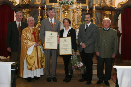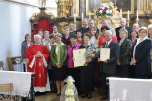 Hippolyt verliehen und Dank und Anerkennung ausgesprochen. Am Ende des Gottesdienstes zum 3. Sonntag der Osterzeit hat GR Pf. Josef Gugler die Dekrete übergeben und sich persönlich und im Namen der Diözese und der Pfarre für das Engagement und Beispiel der Ausgezeichneten bedankt. Vizebürgermeister Johann Dallinger, Christian Müller (Pfarrgemeinderat) und BM Josef Sekora (Pfarrkirchenrat) gratulierten zu dieser Auszeichnung und sprachen in ihren Grußworten die Bitte an Wilma und Karl Höbartner aus, auch in Zukunft für die Pfarre in so vielfältiger und kompetenter Weise zur Verfügung zu stehen. |