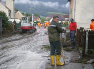 | Mitglieder der Freiwilligen Feuerwehren unserer Gemeinde, einige freiwillige Helfer und Pfarrkirchenräte haben am Samstag (21. Juli) begonnen, mit Hilfe des Baukranes der Fa. Jägerbau die desolate Scheune des Pfarrhofes abzutragen (Bilder dieses Einsatzes). |