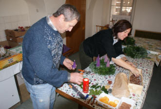 Am Samstag wurden um 15.00 Uhr die von den Frauen des Adventmarktkomitees geflochtenen Adventkränze und Adventgestecke in einer kurzen, feierlichen Andacht durch Pfarrer Josef Gugler geweiht. Anschließend stimmte uns „Gerlindes Saitenmusik“ aus Ottenschlag mit Musik und Texten in den Advent ein.