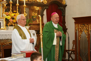 In der Pfarrkirche begrüßte Mag. Karl Höbartner den Diözesanbischof und die Ehrengäste im Namen der ganzen Pfarrgemeinde. Der Bischof dankte in seiner Begrüßung für den herzlichen Empfang und gab seiner Freude über die bevorstehende Weihe der Königin der Instrumente Ausdruck. In seiner Predigt würdigte er den beispielhaften Einsatz der Pfarre und die vorbildliche Zusammenarbeit von Gemeinde, Vereinen und Pfarre bei diesem Projekt, das auch als Zeugnis für Gläubigkeit und Opferbereitschaft der Pfarrangehörigen gesehen werden kann. Wie die Pfeifen der Orgel harmonisch zusammenwirken, so sind auch wir -Große und Kleine, Bedächtige und Schrille - aufgerufen für Harmonie und Zusammenwirken in unserer Gemeinschaft Sorge zu tragen.