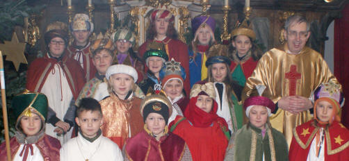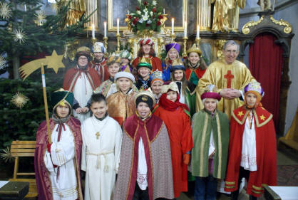 | Am 4. Jänner 2010 werden in unserer Pfarre wieder die SternsingerInnen unterwegs sein. In 5 Gruppen werden sie die Haushalte unserer Pfarre besuchen und um Spenden bitten. Bitte unterstützen Sie diese Aktion. Sie helfen dadurch, in den Entwicklungsländern ein Netzwerk der Veränderung zu knüpfen. |
