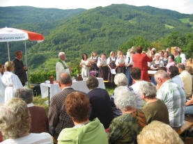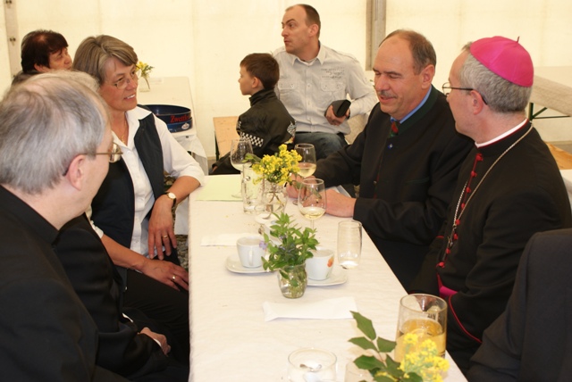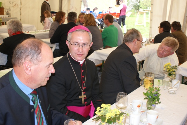 Die Festmesse wurde vom Kirchenchor, dem Jugendchor, den Kindern der VS und einer Bläsergruppe feierlich gestaltet. Im Anschluss daran feierte die Pfarre mit Bischof und Festgästen bei Frühschoppen (MV-Mühldorf), Mittagstisch und Kaiserwetter im Festzelt und auf der Wiese. Viele freiwillige Mitarbeiter, besonders der freiwilligen Feuerwehren unserer Gemeinde sowie der pfarrlichen Räte haben dieses Fest ermöglicht.